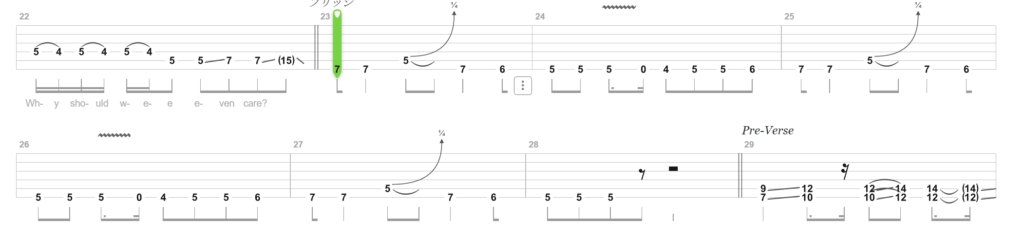 この曲のTAB譜、ネットで探してもYoutubeで検索しても見つからない……。